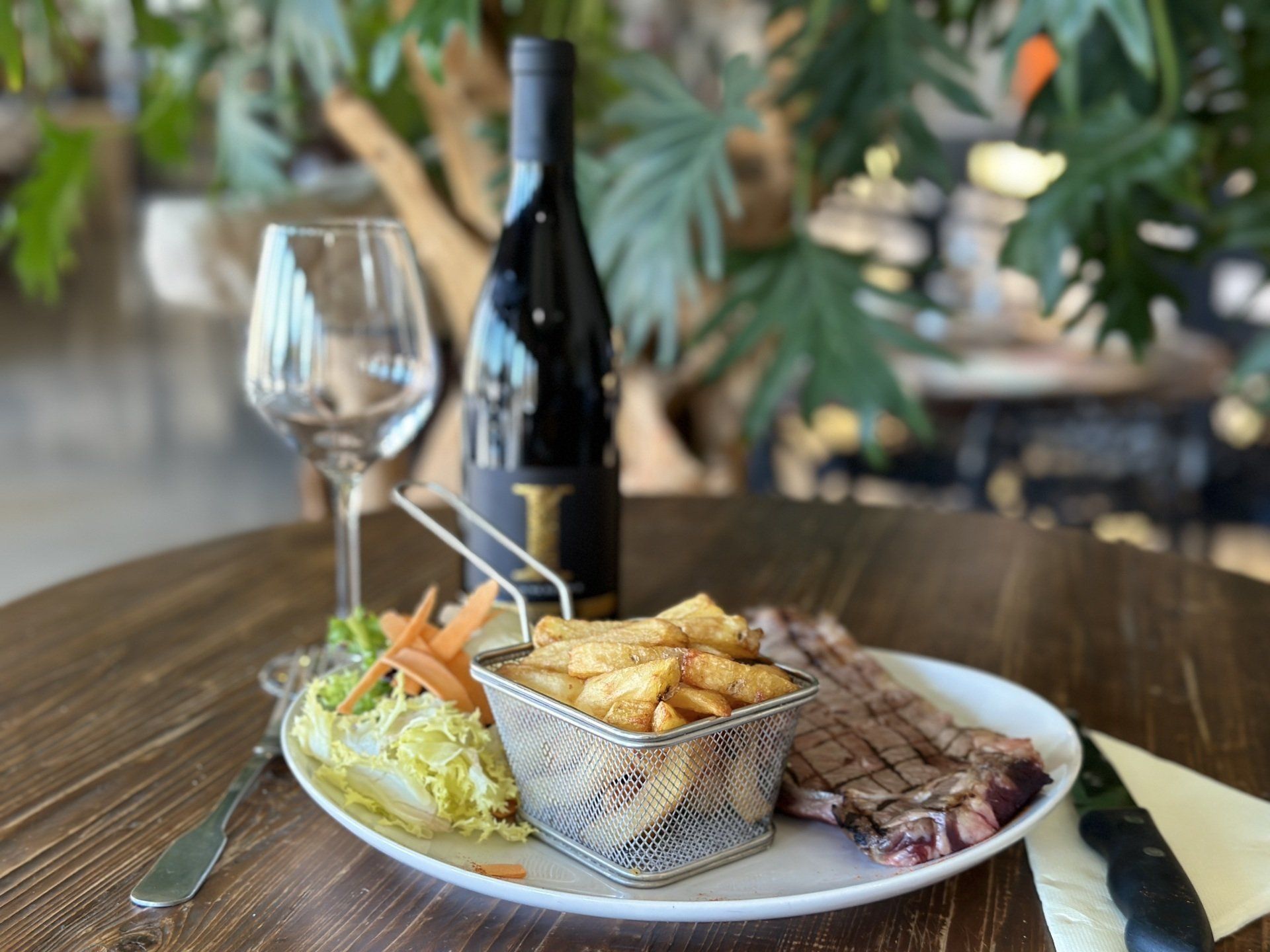 Le restaurant O MILLE VINS à Saint Félix de Lodez c’est un cadre : une salle magnifique et immense, à la décoration moderne, industrielle, végétale et boisée.